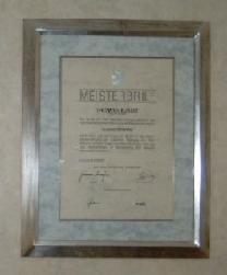 Meisterbrief mit über Eck versilbertem Rahmen, Passepartout